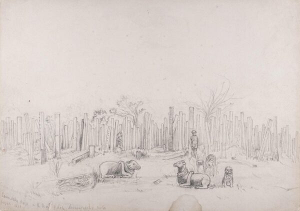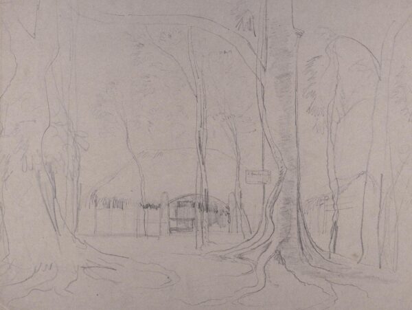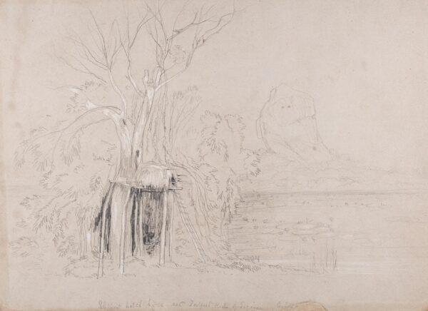 Elephant chasing houses (“pala” in Sinhalese) were common in Ceylon where most of the population farmed the land through Chena cultivation. The stations were manned throughout the night to chase away any Elephants or other large animals that might attack their fields. This is still practised in some rural areas. Pencil. Inscribed. July 1848. Provenance: the Emerson Tennant family, Co Fermanagh, and by descent.