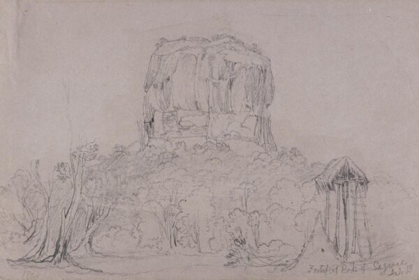 Site of the Palace of King Kashyapa in the 5th Century and now a World Heritage and UNESCO site. Pencil. Inscribed ‘Fortress Rock of Sigiree’ [sic]. Dated, ‘July 13’ and ‘1848’. Inscribed verso. Provenance: the Emerson Tennant family, Co Fermanagh, and by descent.