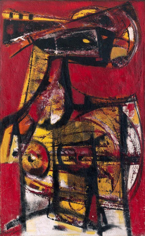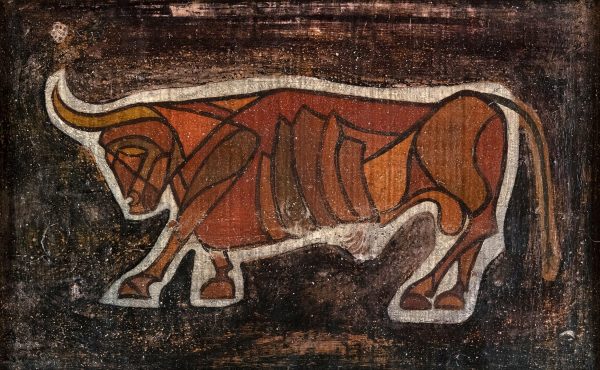 Barker, Kit (1916 – 1988)Cornwall; ‘Bull’.Oil on card. c.1947/48. Provenance: the artist to David Wright; the artist’ family, by descent.5.5×9.25 inches.Framed: 9.25×12.75 inches.