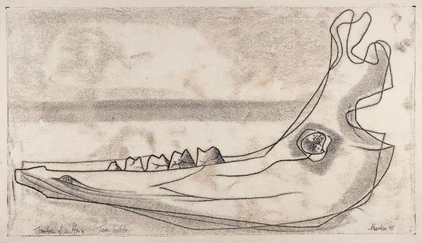 Barker, Kit (1916 – 1988)New Mexico; ‘Jawbone of a Horse / Taos Pueblo’.Offset drawing. 1951. Signed, titled and dated. Provenance: the artist’ family, by descent.10.5×18.25 inches.Framed: 15×23 inches.