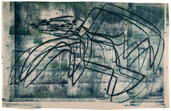 Barker, Kit (1916 – 1988)Saratoga Springs, New York; ‘Bird in Flight with Drawing Pin’.String print (monotype). 1951. Signed, titled and dated verso. Provenance: the artist’ family, by descent.12.25×18.75 inches.Framed: 17.5×24 inches.