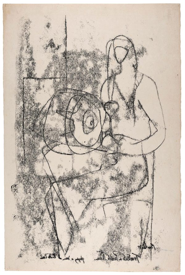 These rare early works by Kit Barker were made between 1947 and 1952. These were exciting and formative years for Kit and his wife Ilse. Ilse (née Gross) was a German émigré who escaped to England in 1938 and only discovered that her parents had been murdered at Theresienstadt in 1947. She was an author and used the nom de plume Kathrine Talbot. In later life she wrote memoirs of her and Kit’s life together. Extracts from these memoirs are published at the bottom of this page by kind permission of her family. They are highly recommended to anyone interested in the post-war world of artists and writers, in Britain and America.