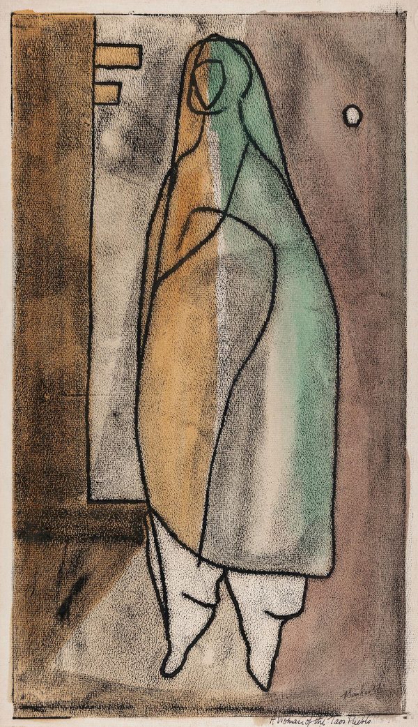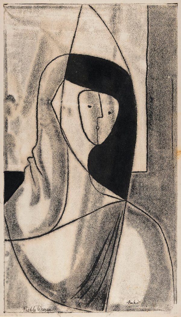 Barker, Kit (1916 – 1988)New Mexico; Taos, ‘Pueblo Woman’.Offset drawing. 1951. Signed, titled and dated. Provenance: the artist’ family, by descent.18.25×10.5 inches.Framed: 23×15 inches.