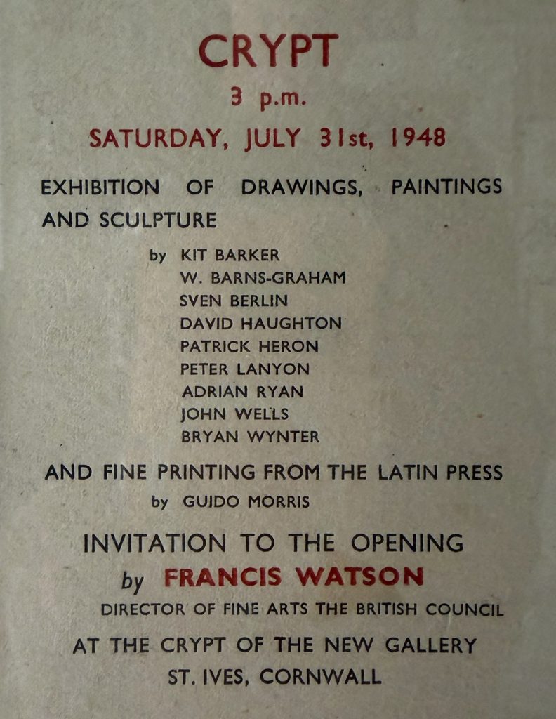 London born, Kit Barker did not attend university or any of the major art schools. However – bright, creative and inquisitive, he had an early interest in the work of Jung and Freud and amongst other creative endeavours (he once had a pottery in Fulham and was a fine singer) he was making complex Surrealist paintings in the 1930s. After serving in a tank regiment during the War, he decided to pursue a career as an artist. In the spring of 1947 he accompanied Bryan Wynter (1915-1975) to Zennor in Cornwall, then still one of the most fertile centres for modern British art. He stayed for two years, living first in an empty sail loft in Newlyn and then, having met Ilse, at Noon Veor, a cottage high above Zennor overlooking the bay. In Cornwall he came into contact with many artists and writers. Although quiet and shy by nature Kit evidently became a respected part of the artist community there, in 1948 showing in St Ives alongside Wilhemina Barns-Graham CBE (1912-2004), Sven Berlin (1911-1999), David Haughton (1924-1991), Patrick Heron CBE (1920-1999), Peter Lanyon (1918-1964), John Wells (1907-2000), Bryan Winter and Adrian Ryan (1920-1998).