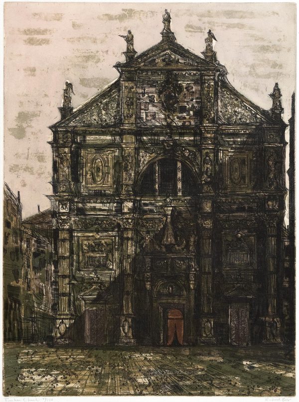 Beer, Richard (1928 – 2017)Italy; ‘Venetian Church’ (San Moise).Etching and aquatint. 1964. Signed, titled and numbered 77/100.24.5×18 inches.