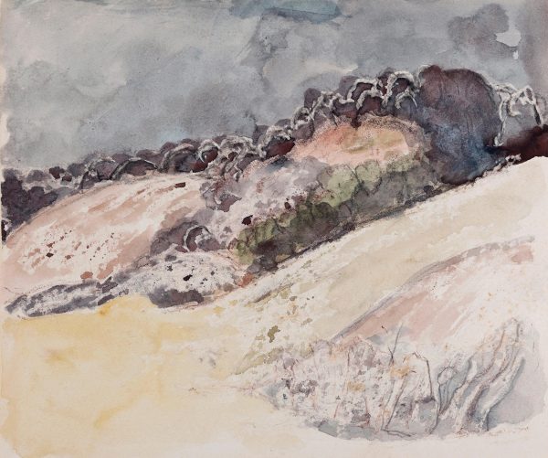 Taos undoubtedly had the deepest effect on Kit’s work (Nos.10-14). The Pueblo people, adobe buildings and desert landscape encapsulated many of the elements he had already been exploring in his work. Ilse recounts how Kit ‘painted the desert, the rocks, the sagebrush and the pueblo shapes for many years’ and that the desert ‘remained forever in our inner eye’.