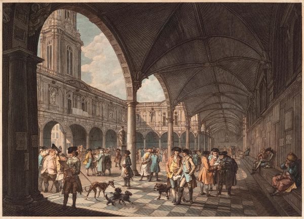 Bartolozzi, Francesco (1727 – 1815)London; The Royal Exchange.Etching. 1788. Later hand colouring. Engraved by Francesco Bartolozzi (1728-1815) after Philip James de Loutherbourg (1740-1812)15.25×21 inches.