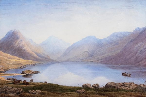 Turner of Oxford, William (1789 – 1862)Lake District; ‘Wast Water, Cumberland’.Watercolour. Signed. Titled and inscribed verso. Exhibited: Agnews, ‘100th Annual Exhibition of Watercolours and Drawings, 1973.10.5×16 inches.Framed: 17.5×22.5 inches.