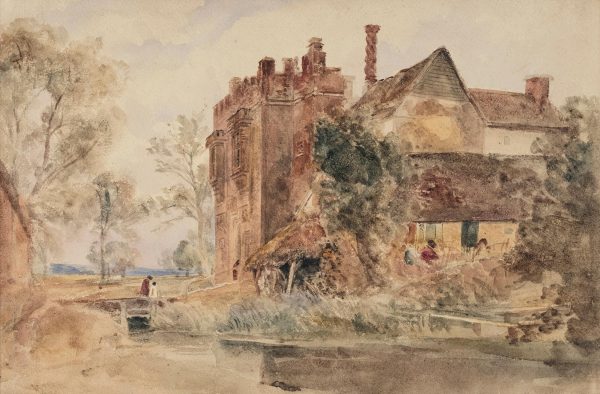 Bourne, James (1773 – 1854)Kew Gardens; The Pagoda at Kew seen from the surrounding Surrey countryside.Pencil, watercolour and monochrome wash. c.1820. Provenance: An album of drawings by Bourne with A and H, 2006.10.5×14 inches.