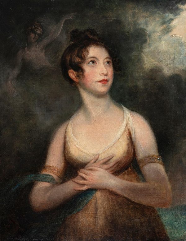 Devis, Arthur William (1762 – 1822)Shakespeare; The Artist’s wife as Miranda.Oil on canvas. c.1804. Inscribed to a label verso, ‘Mrs A. W. Devis / Née Margaret Lanchester / Painted as Miranda’. Exhibited: Probably Royal Academy Exhibition, 1804, No.84 (‘Portrait of a Lady as Miranda’); ‘Lancashire Art’, Preston, 1937, No.41.12.25×9.25 inches.Framed: 20.25×17.5 inches.