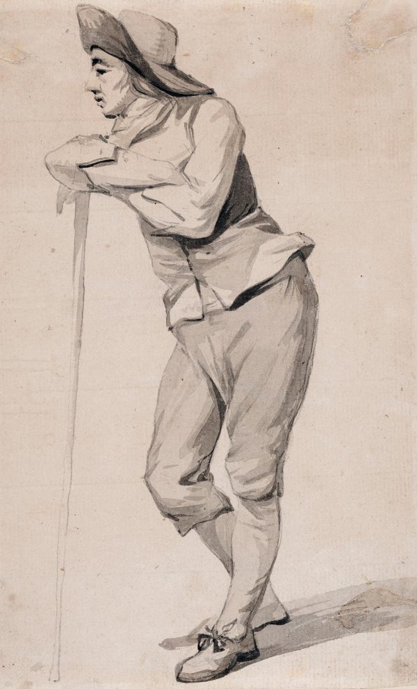 Sandby R.A., Paul (1731 – 1809)A gardener resting on a hoe.Pen, ink and monochrome wash. c.1750. Provenance: Christies, 1965.7.5×4.5 inches.