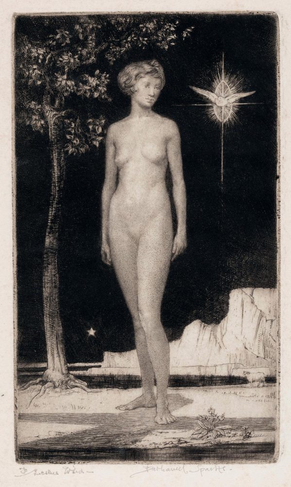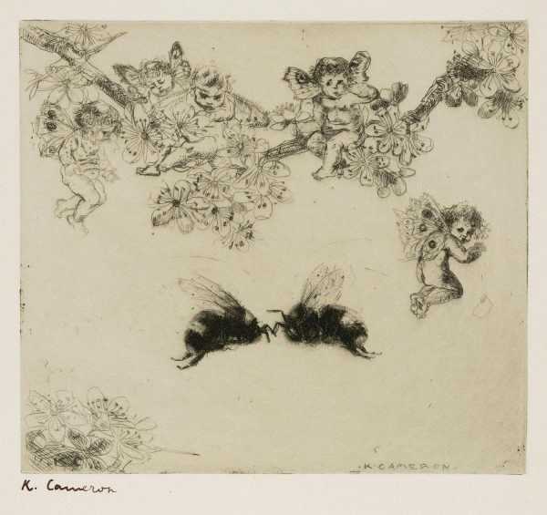Barker, Kit (1916 – 1988)Cornwall; ‘Satyr and Nymph’.Wax-etching (monotype). 1948. Signed and dated. Provenance: the artist’ family, by descent.11.75×8.25 inches.Framed: 17.5×13.5 inches.