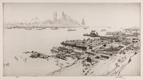 McBey, James (1883 – 1959)U.S.A.; ‘New York from Weehawken’ (H.277).Etching. 1941. Signed and numbered XXVII.8×15 inches.