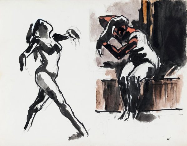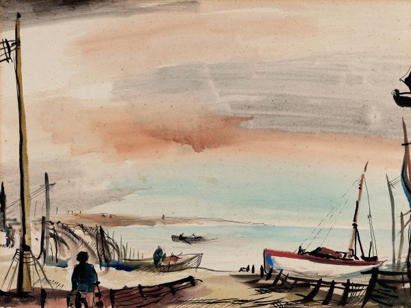 Barker, Kit (1916 – 1988)Cornwall; ‘Man with Knife’.Ink and watercolour. c.1948. Provenance: the artist’ family, by descent.12×9 inches.Framed: 17.5×14 inches.