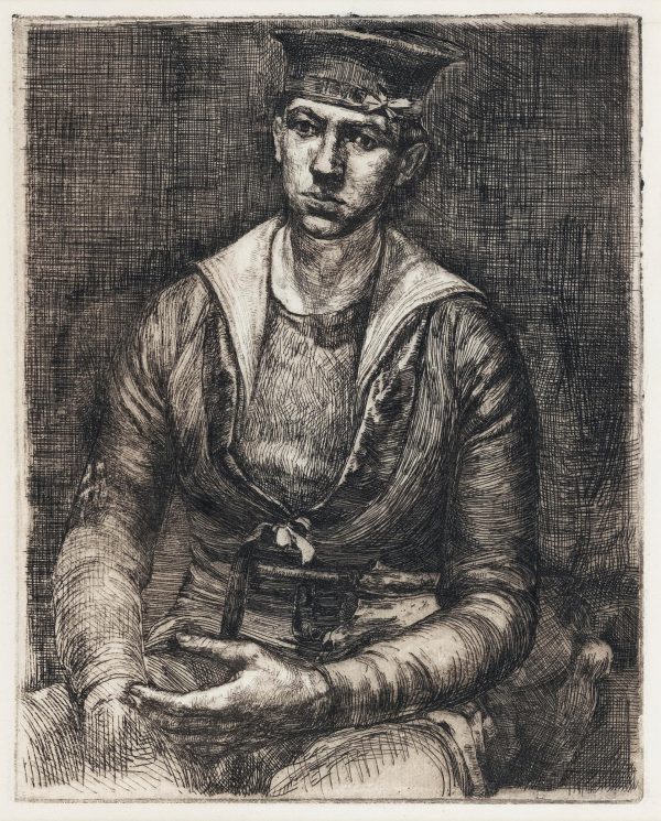 Mason, Raymond (1922 – 2010)Self-portrait.Etching. c.1939-1942, before Mason was invalided out of the Navy. Proof.7.75×6.25 inches.Framed: 15×13 inches.