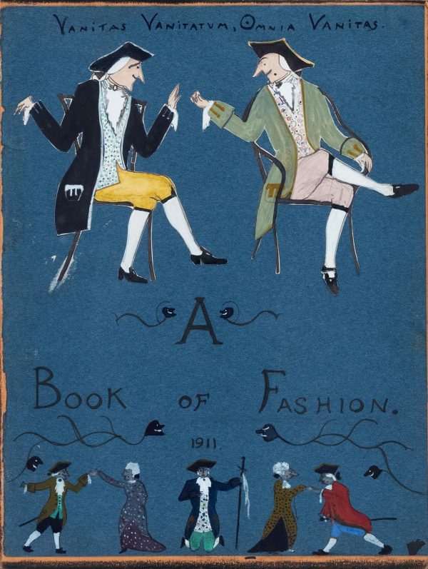 Nash R.A., John (1893 – 1977)‘Vanitas Vanitum, Omnia Vanitas. A Book of Fashion’.Watercolour and gouache. 1911. Provenance: the artist to David Wolfers (1917-2001) or the New Grafton Gallery.9.75×7.5 inches.Framed: 18.75×15.75 inches.