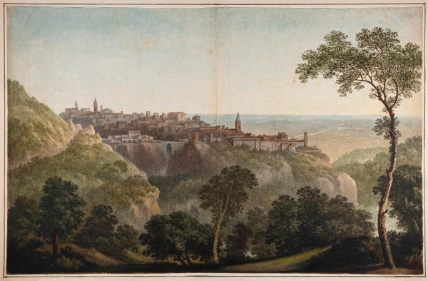Smith, John ‘Warwick’ (1749 – 1831)Italy; Tivoli looking towards Rome.Watercolour. 1780. Signed and inscribed ‘Roma / J Smith / 162’ verso. This large scale work was made while Smith was on his 1776 – 1781 trip to Italy, funded by George Greville, 2nd Earl Warwick (1746-1816).14.5×22.5 inches.