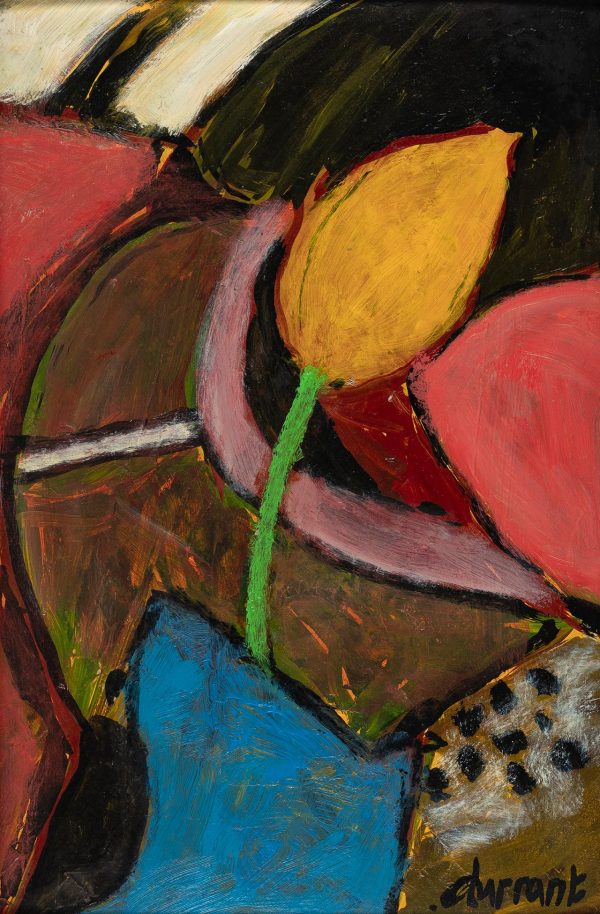 Durrant, Roy Turner (1925 – 1998)‘Composition with Yellow Tulip’.Oil on card. 1949. Signed. Signed, titled and dated verso. Provenance: Wenlock Fine Art; Louise Kosman.9.5×6 inches.Framed: 15.5×11.25 inches.