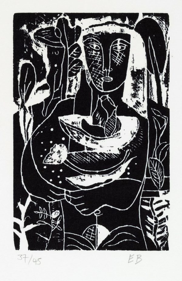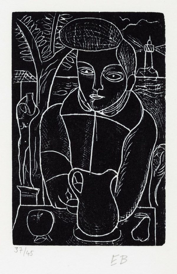 Burra, Edward (1905 – 1976)Nine Woodcuts; ‘Boy with a Jug’.Woodcut. c.1929. Re-strike printed by Alexander Postan in 1971 from the original blocks. Published by Nicholas Treadwell in an edition of 45 and sold by Observer Art. The blocks were then given to the Tate.11.25×9.5 inches.Framed: 15×12 inches.