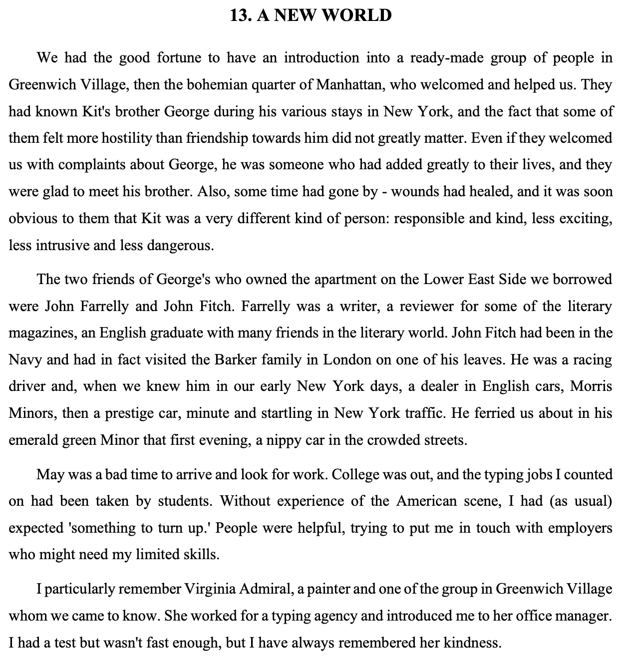 From New York the Barkers went to Yaddo, the famous artists’ community at Saratoga Springs, both feeling they had discovered somewhere they could work seriously. They returned to Yaddo several times, Ilse writing the bulk of her first novel on their second visit and Kit preparing for a one-man show in New York. He also taught for a period at nearby Skidmore College.