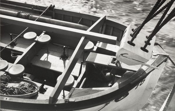 The very first photographs that he took on the way to the United States related to the preoccupations of his painting; a ship’s mast and rigging was a slender echo and anticipation of the open cage structure he often used, the complicated interplay of hard edges and hollowed shadows within the curve of a life-boat proclaimed his interest in the mystery of ordinary things seen from unordinary angles.