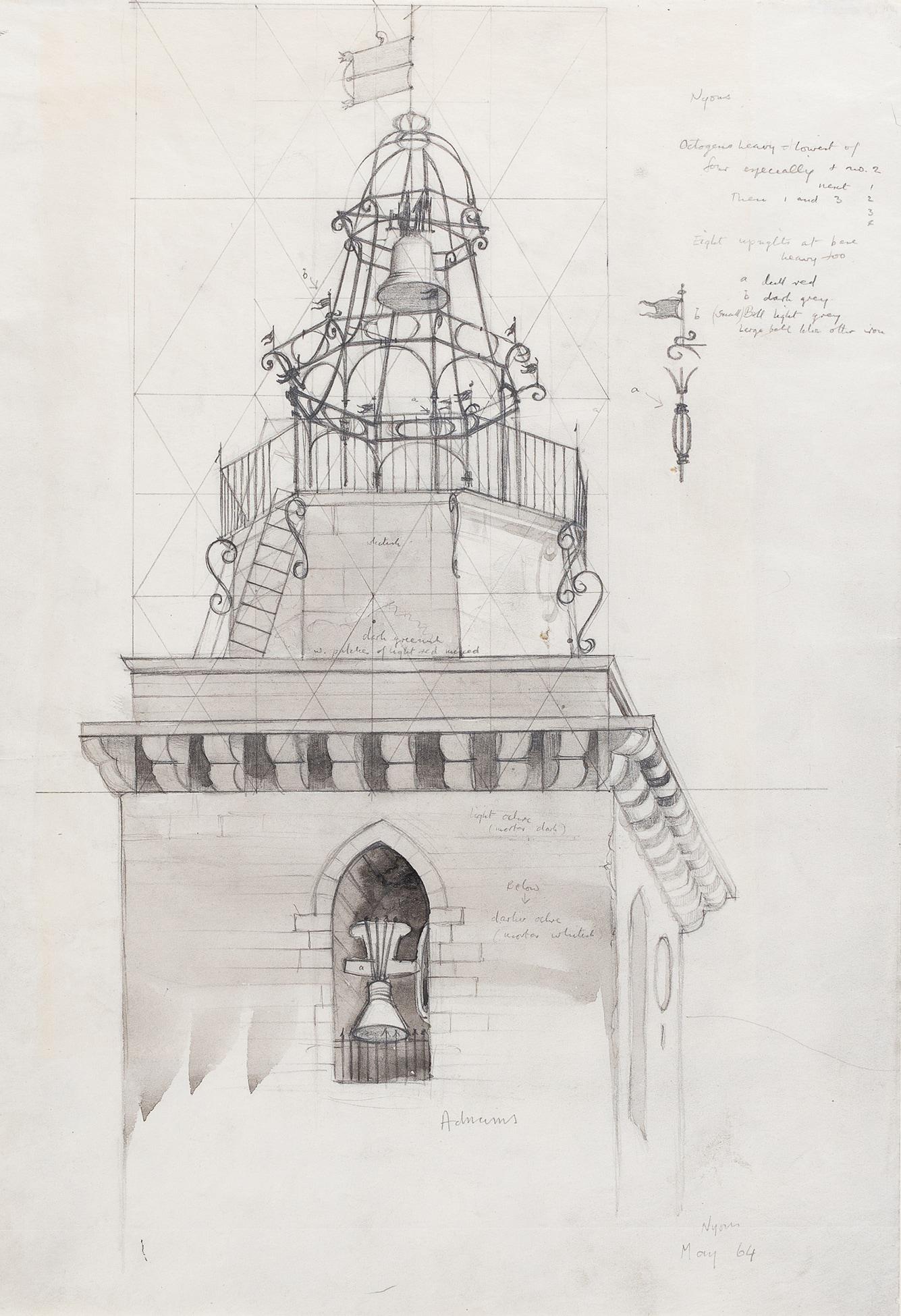 Adnams, Marion (1899 – 1995) – France; ‘Nyons’ the belfry. Adnams, Marion (1899 - 1995) France; 'Nyons' the belfry. Pencil. Signed and dated, 1964. 13.5x9.5 inches. Sold Favourite