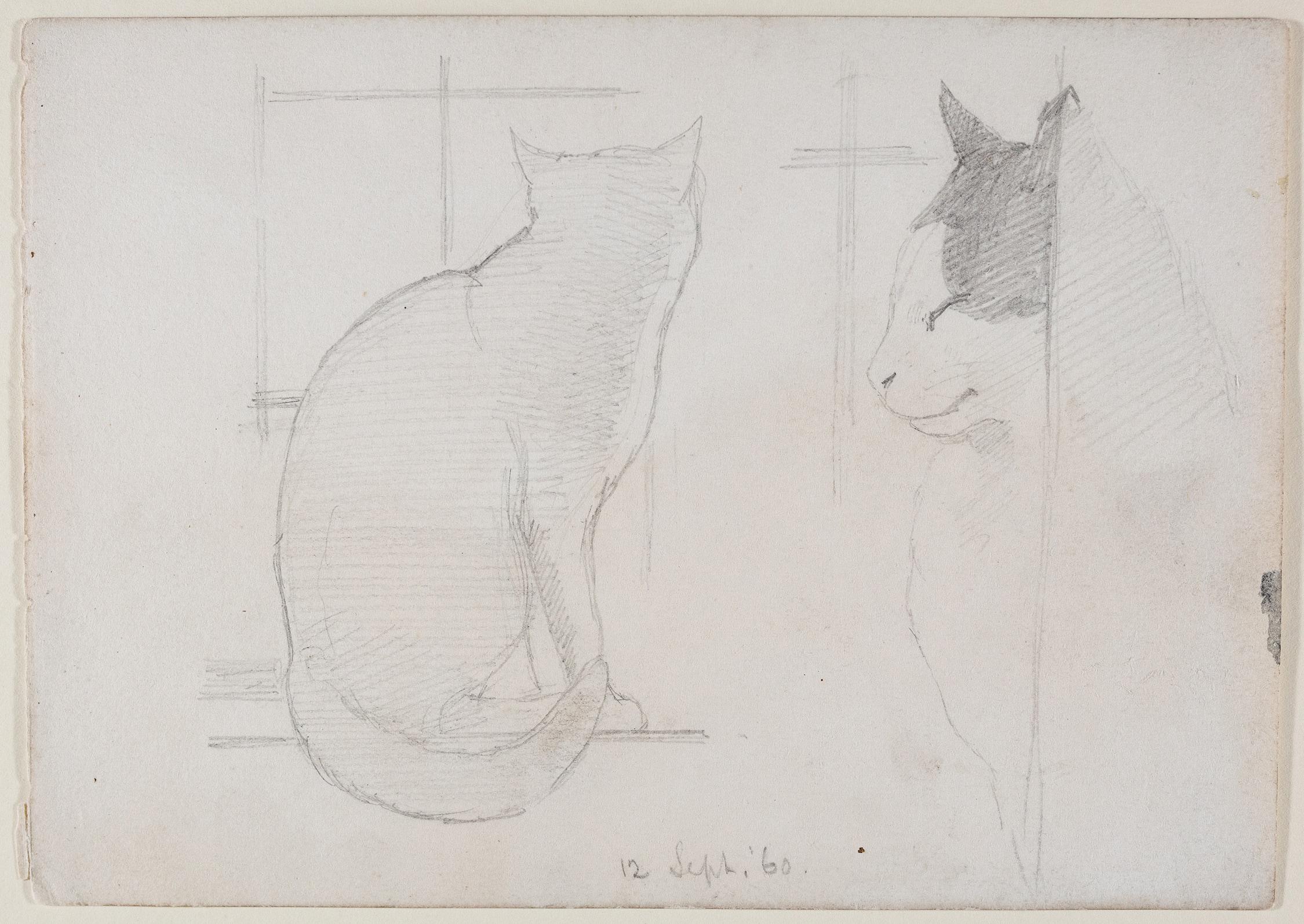 Keene (fl.1830-1895), Mary – Cat on a window sill. Keene (fl.1830-1895), Mary Cat on a window sill. Pencil. Dated, '12 Sept '60'. From a sketchbooks of drawings by the artist with A and H. £125 Favourite Enquire
