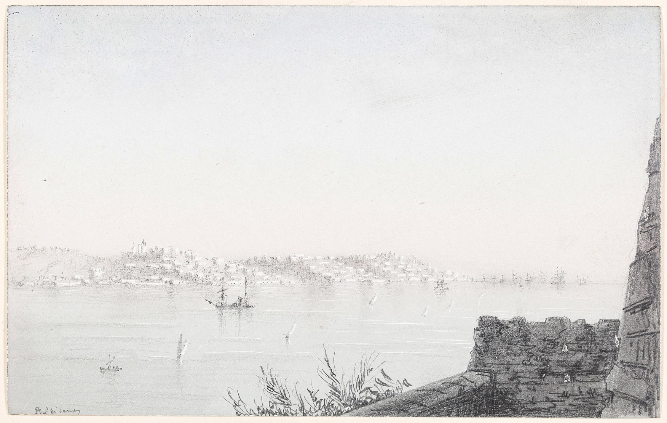 Gigault de Crisenoy, Baron Pierre Emile (1827 – 1902) – A harbour and fleet. Gigault de Crisenoy, Baron Pierre Emile (1827 - 1902) A harbour and fleet. Pencil, watercolour and gouache. Signed. 4x6.25 inches. Sold Favourite