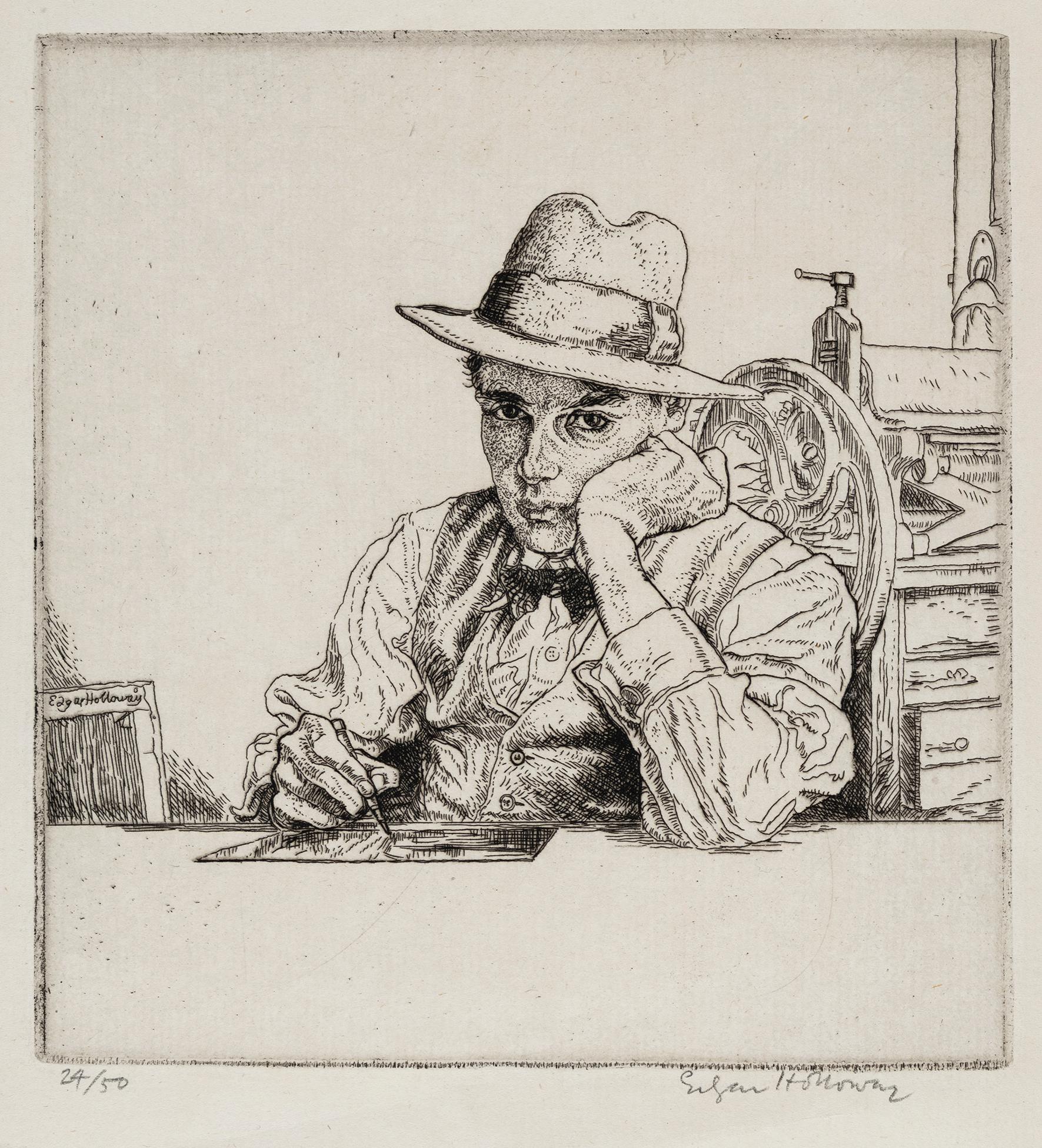 Holloway, Edgar (1914 – 2008) – ‘The Etcher No.18 (The Etcher II)’ (M.239); a self-portrait of the artist at work.