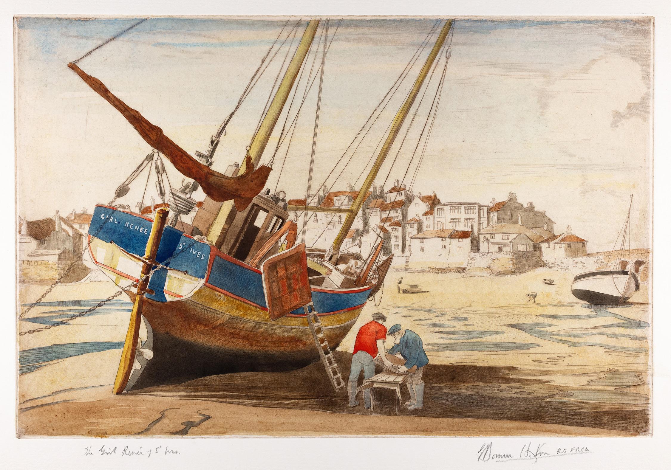 Hoyton, Edward Bouverie (1900 – 1988) – Cornwall; ‘The Girl Renée of St Ives’. Hoyton, Edward Bouverie (1900 - 1988) Cornwall; 'The Girl Renée of St Ives'. Etching with hand colouring. Signed and titled. 11.75x17.75 inches. Sold Favourite See available works by this artist.