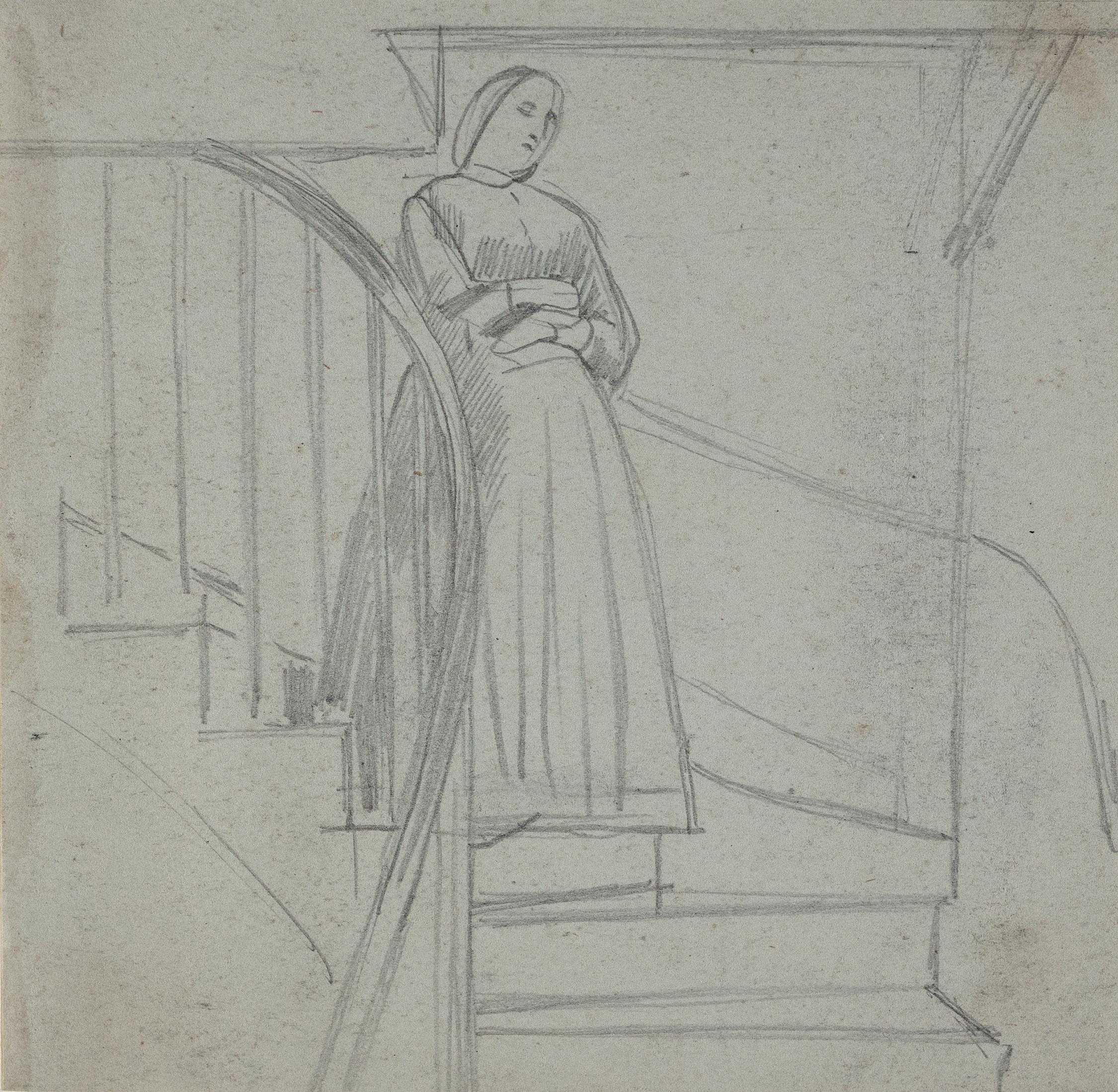 Keene, Charles (1823 – 1891) – Woman on a staircase. Keene, Charles (1823 - 1891) Woman on a staircase. Pencil. Provenance: an album of Keene studies belonging to Lord Clark. 4.5x4.5 inches. Sold Favourite