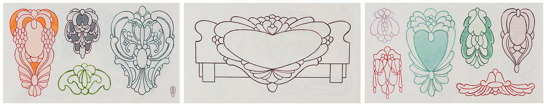 Waller, Pickford (1849 – 1930) – Three Art Deco Designs. Waller, Pickford (1849 - 1930) Three Art Deco Designs. Pen, ink and watercolour. c.1910. Provenance: a sketchbook of drawings by Pickford Waller. 4x7 inches. Sold Favourite