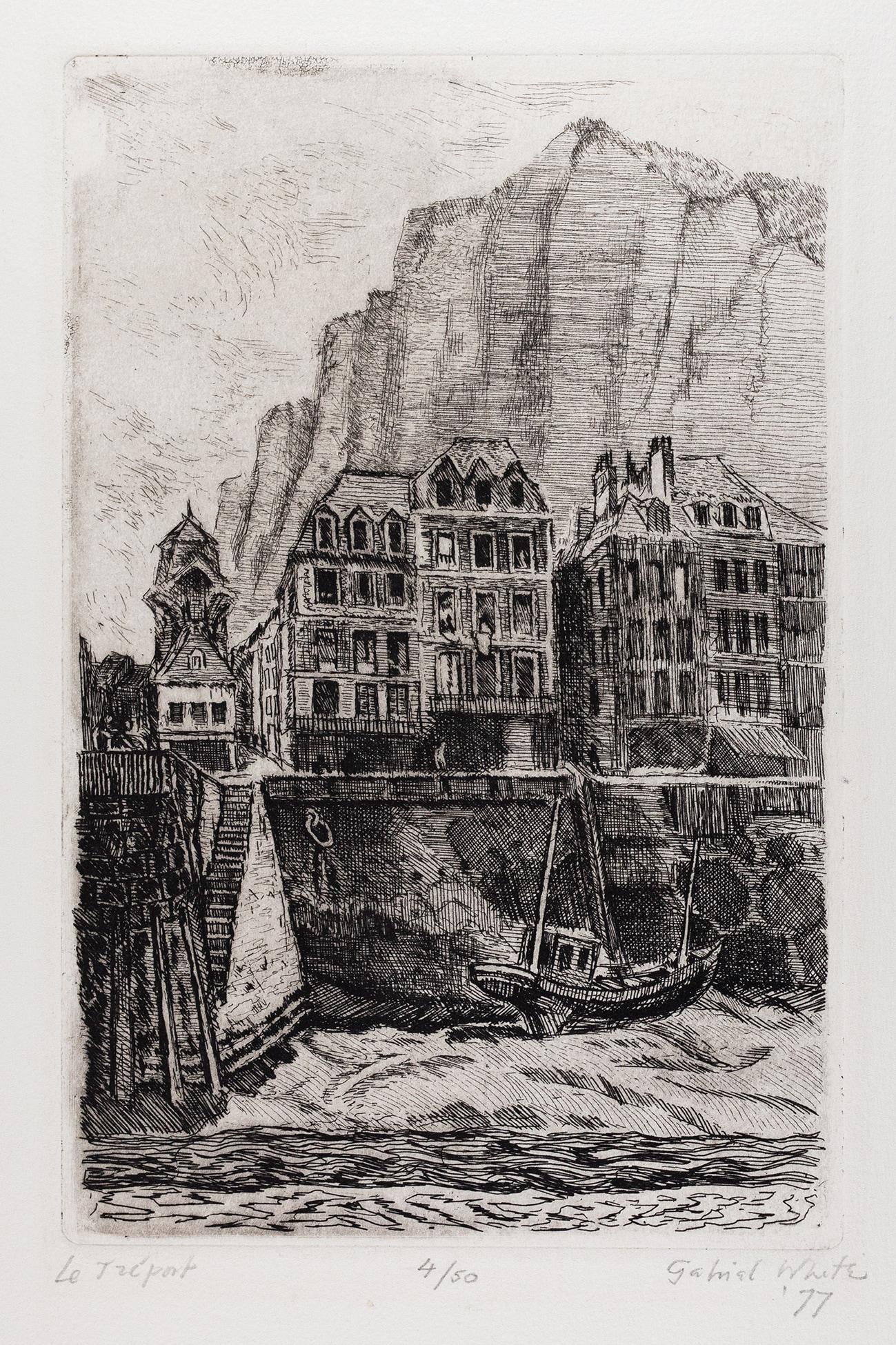 White, Gabriel (1902 – 1988) – France; Normandy, ‘Le Treport’. White, Gabriel (1902 - 1988) France; Normandy, 'Le Treport'. Etching. Signed, titled, dated 1977 and editioned '4/50'. 11.5x7.25 inches. Sold Favourite